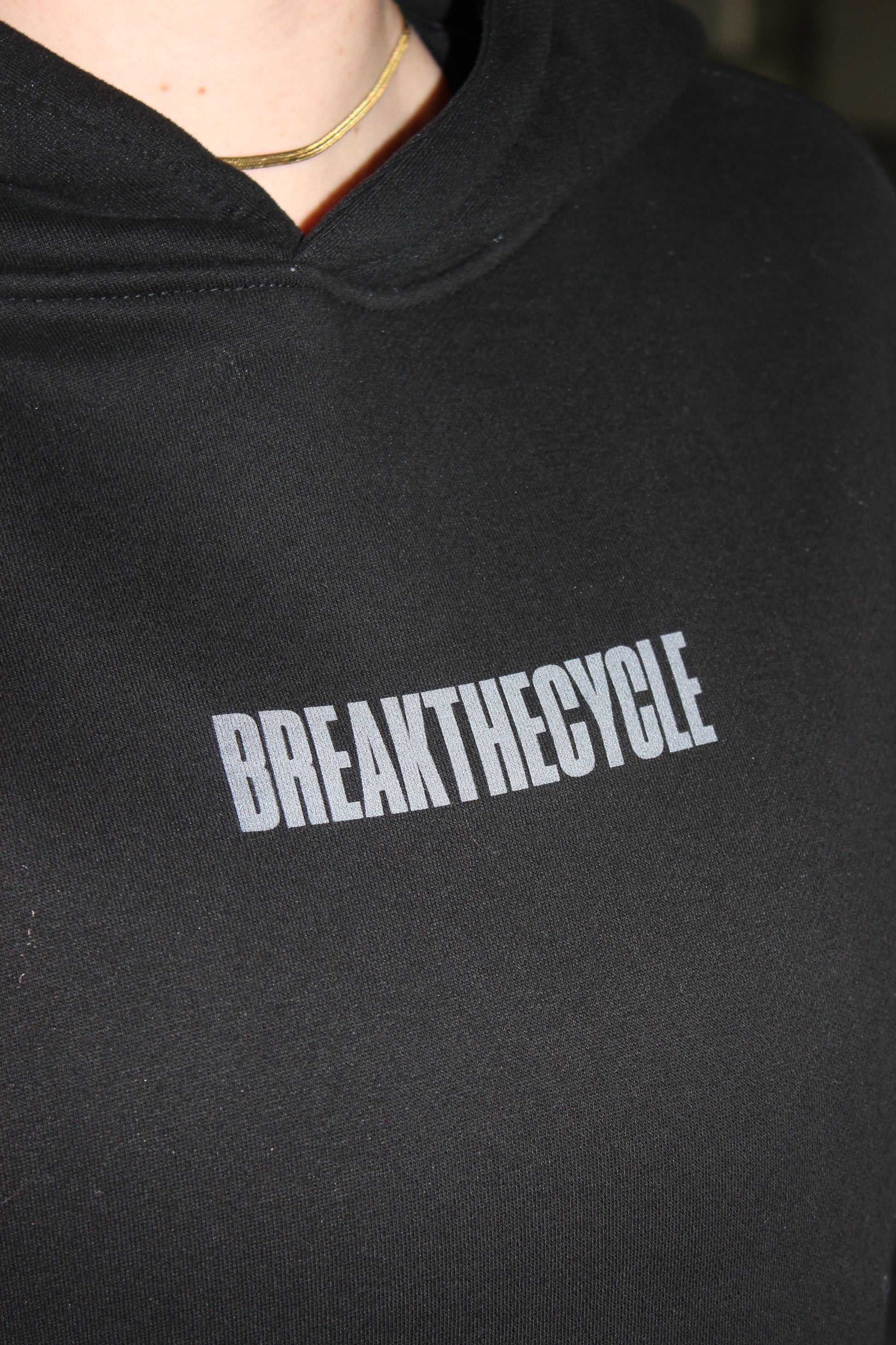 Black hoodie with grey DTG print.